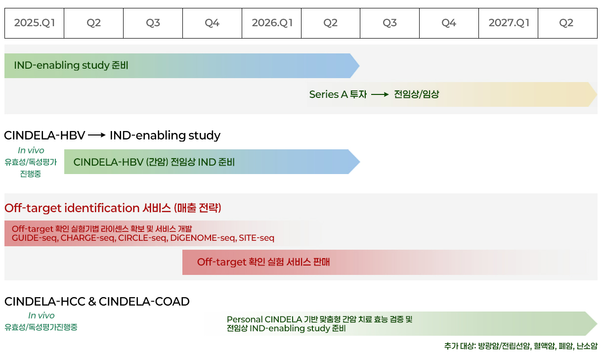 임상 승인 가능성이 높은 Universal CINDELA 에 집중하여 전임상 IND-enabling study → Personal CINDELA 로 확대